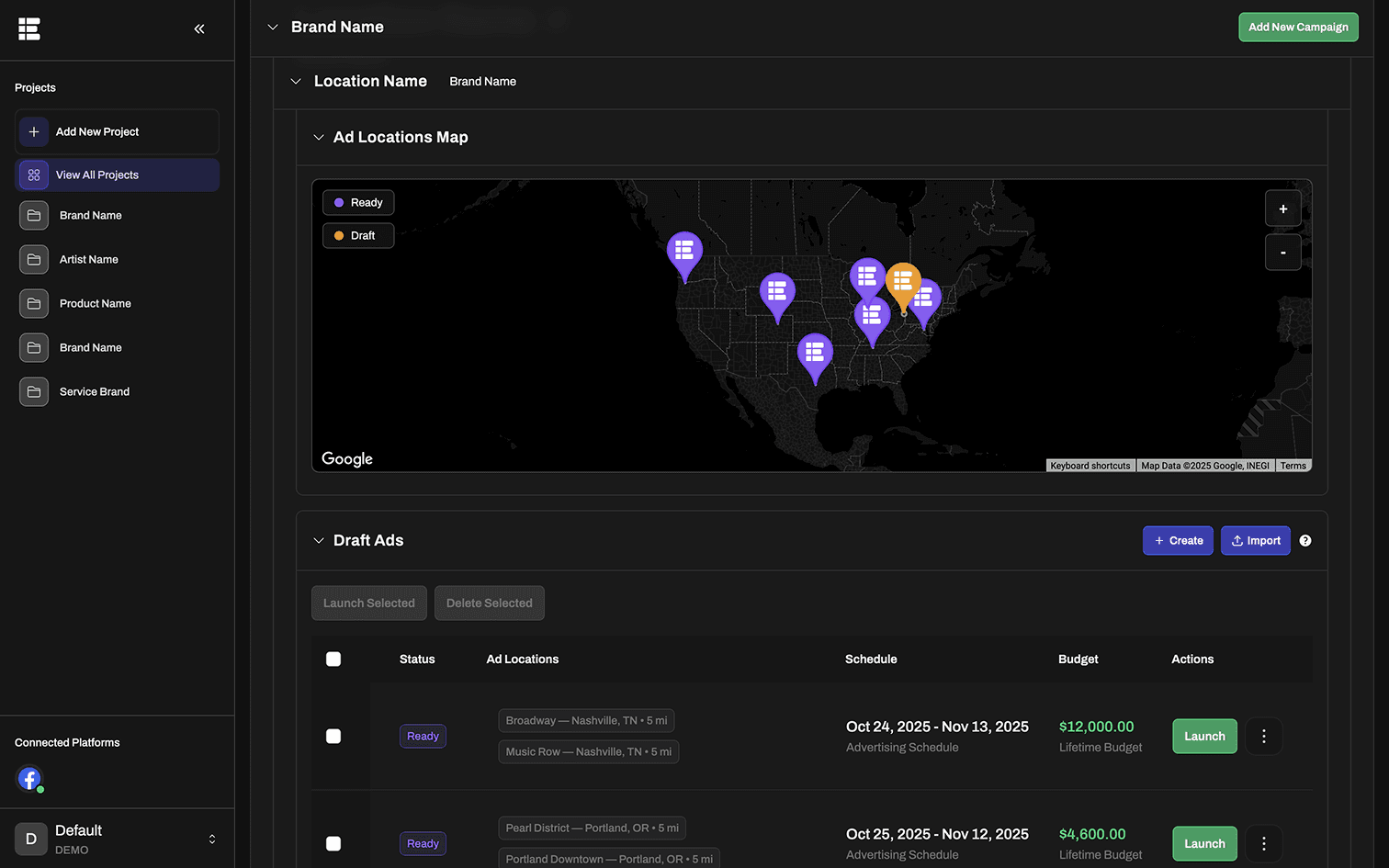 When you’re managing multiple projects like events, product launches, brand activations, or in this case a music tour, it can feel like you need a full team, especially for ad creation. With Eventsheet, one person can set up, create, and launch a single ad or hundreds in just minutes.